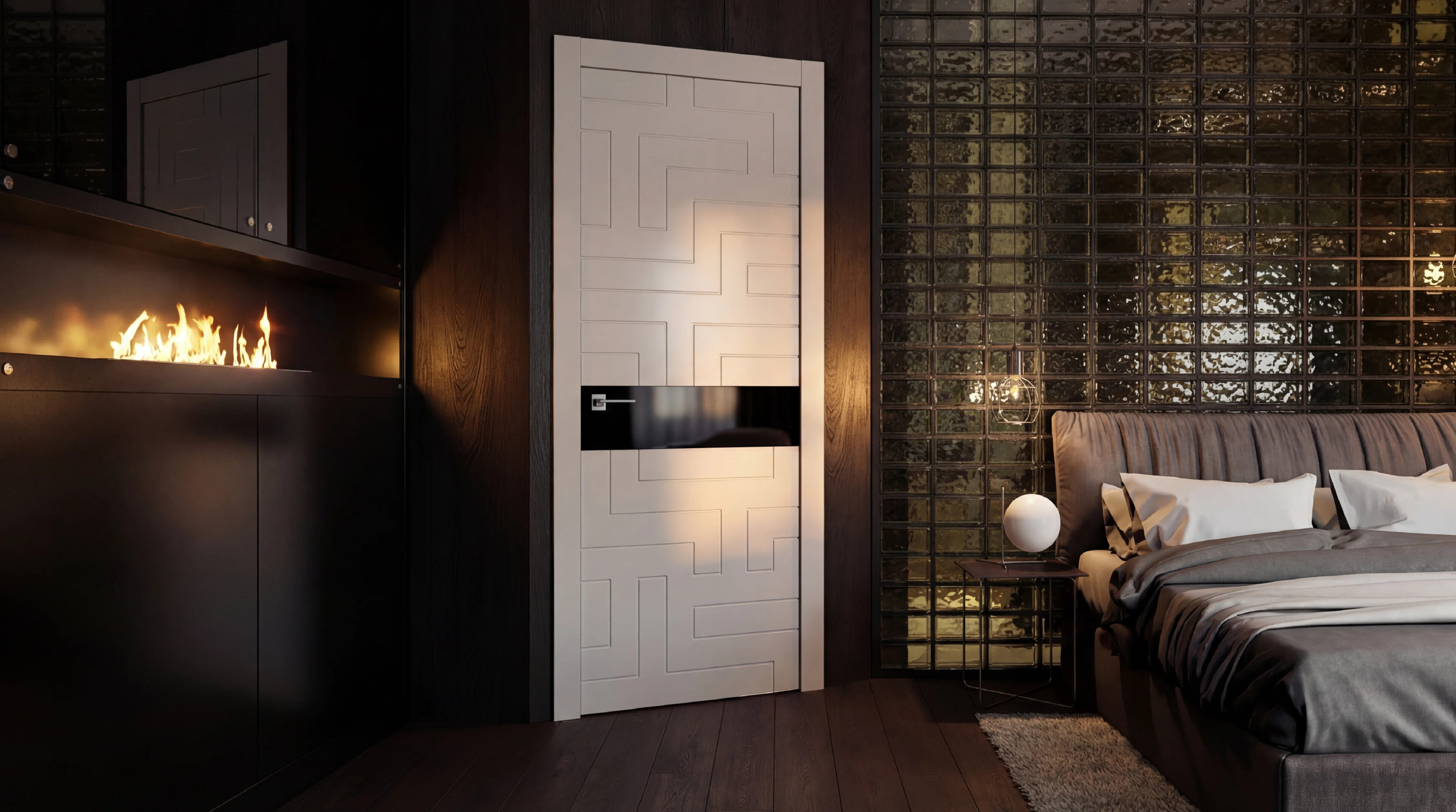 Раздвижные двери с невидимыми механизмами, обеспечивающие плавное и тихое открывание.